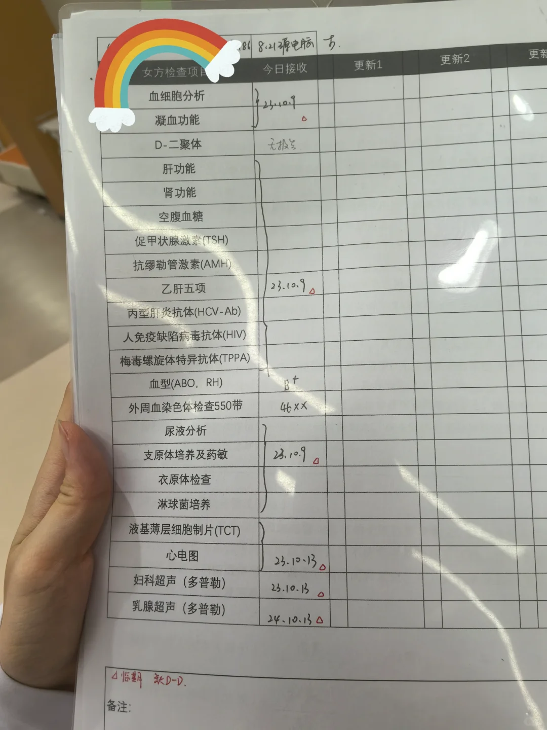 8月2号晚上终于迎来了取卵后的大姨妈,提前咨询永远幸前台4号(周日)挂其他医生的号能否拿到匡主任的医嘱,得到肯定的答复后,8月3号高铁🚄==》上海。然后还在高铁上的时候匡主任助理医生电话建议5号(周一)再去医院,这样主任能亲自做B超,说月经D4也不晚。好吧~只能去上海等了~
